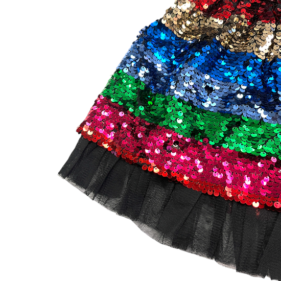 Multi Color Sequin Stripe Skirt with elastic waist, cotton lined.