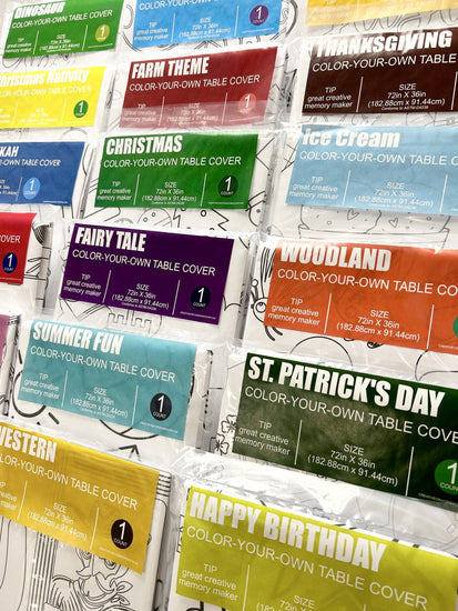 Each exclusively designed paper table cover arrives folded in a 10x14 inch clear package for easy, space-saving storage. Simply spread across your dining table for hours of fun for kids and adults alike!