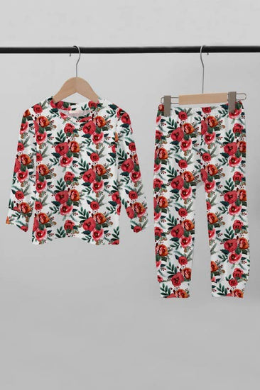 Keep your little one comfy and festive this year with our Poinsettia Christmas PJ + Play Set! This super stretchy and soft set is perfect for lounging around the house and, with several dynamic colors to choose from, is sure to be the best-dressed in any family photo! And don't forget- we add extra love to all our clothing! Now that's a Christmas miracle!