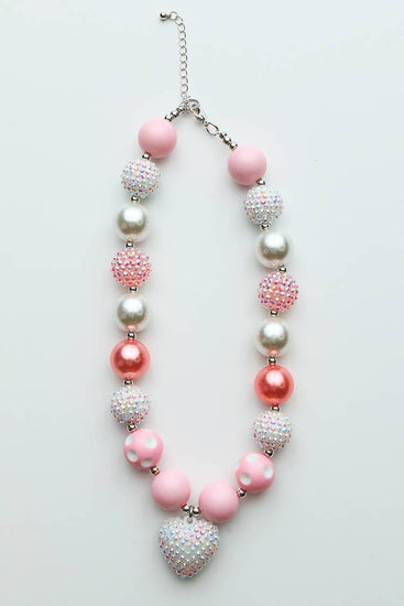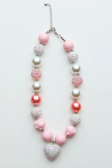 Chunky Pearl Heart Necklace an ideal addition to any young fashionista's wardrobe. The necklace features a stunning pearl heart design, would be so cute for Valentines Day. Can be paired with our tutu's, tees, sweatshirts, hats, bags, bracelets, clips and headbands! Create an outfit and make it your own! These necklaces are a perfect addition to an Easter Basket or xmas stocking!