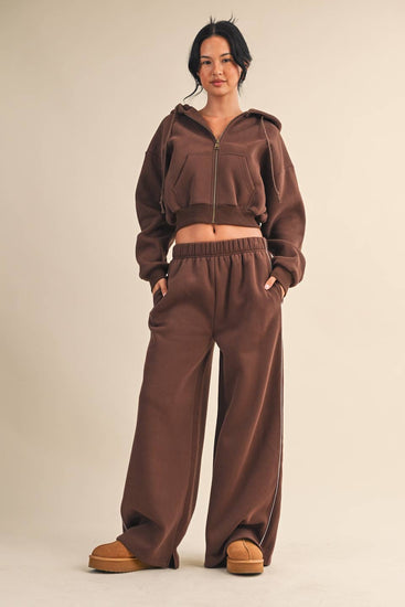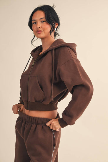 Cozy Cocoa Fleece Oversized Crop Full Zip Hoodie
