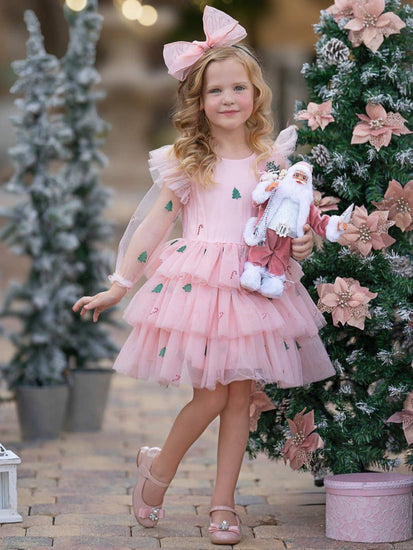 Let your little one sparkle this holiday season in the Pink Candy Cane Christmas Dress. Featuring playful candy cane and Christmas tree embroidery, this dress is perfect for festive photos and parties. Layers of soft pink tulle add a dreamy volume, while the smooth lining ensures all-day comfort. Long, delicate sleeves with matching holiday details bring an elegant finish to this charming holiday look. Make magical memories with a dress that’s as joyful as the season itself.