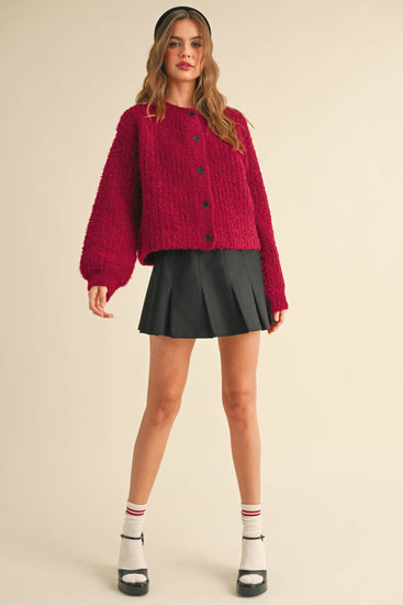 Spice up your wardrobe with our Cranberry Cardigan. This round neck, button front sweater cardigan adds a pop of color to any outfit. With a comfortable fit (perfect for all body types), you'll never want to take it off. Plus, it's machine washable for easy care.