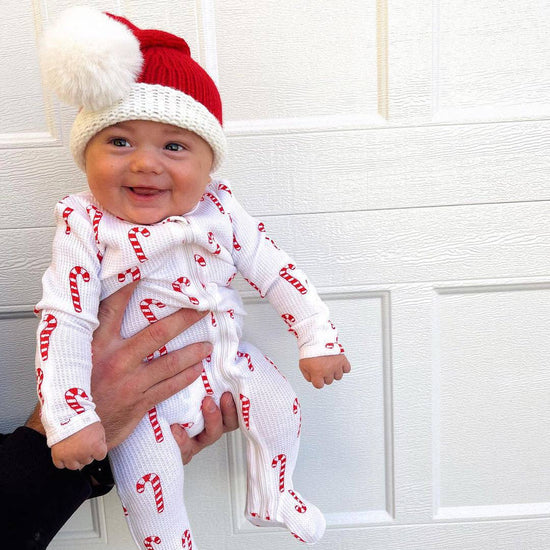 Waffle White Candy Cane Footie